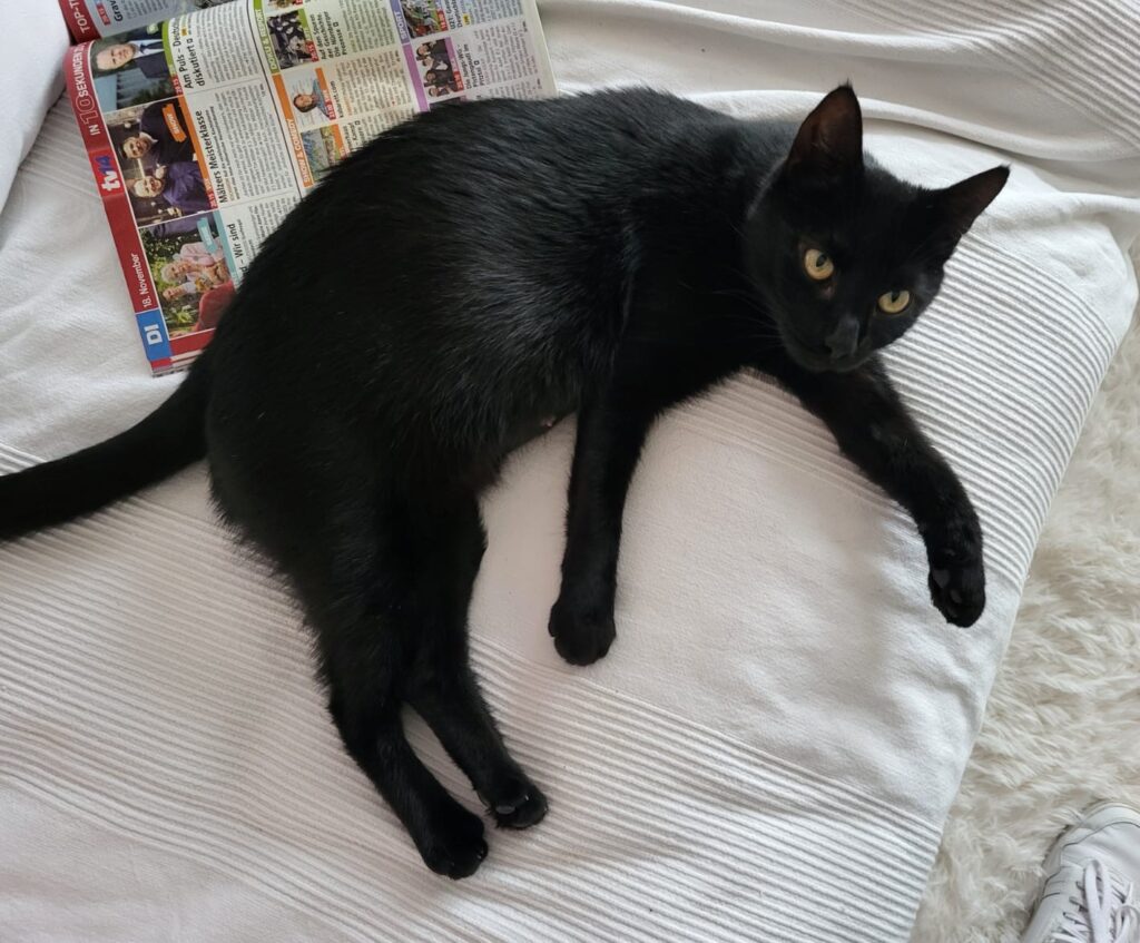 Elli ist eine zuckersüße Katze, die wir Anfang Juli aufgenommen haben. Sie wurde im Juli 2024 geboren und ist eine schwarze Schönheit. Sie hat einen sanften Charakter und ist sehr verschmust.