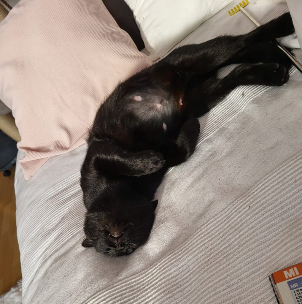 Zusätzlich haben wir vor kurzem eine trächtige Katze als Fundtier aufgenommen. Wir haben sie auf einer Pflegestelle untergebracht, wo sie gut und liebevoll versorgt wird. Vor 3 Tagen, am 18.07., hat sie drei Kitten zur Welt gebracht.
