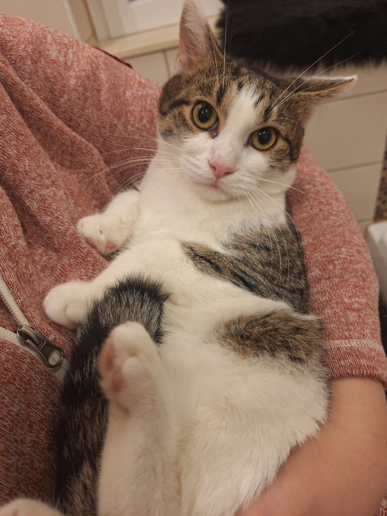 Ich bin ca. 5-6 Jahre alt – so genau wissen die Menschen das nicht – und sterilisiert. Mein größter Wunsch ist es, ein endgültiges Zuhause zu finden, wo ich mit meinem Menschen kuscheln kann.