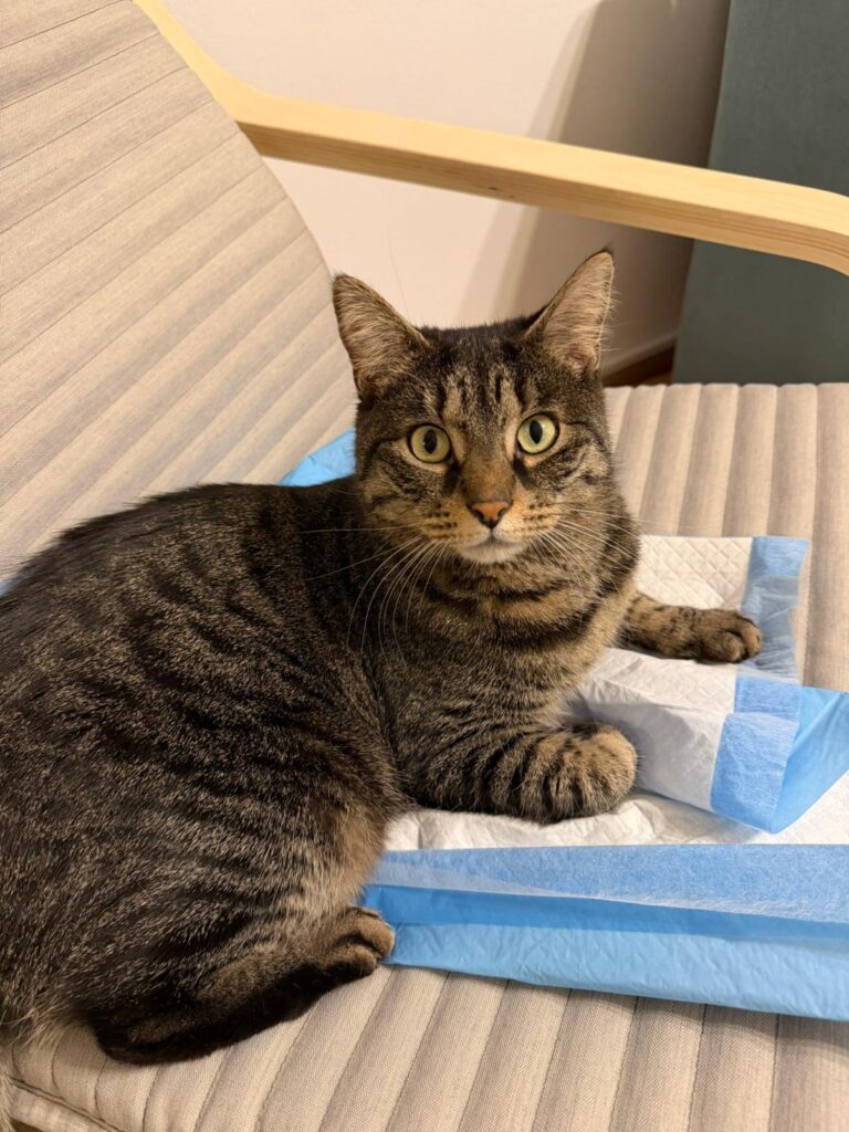 Miss Marple lebte in Köln mit weiteren Katzen auf einem Hinterhof. Dort wurde sie Ende August 2025 eingefangen und kam auf ihre Pflegestelle nach Brühl. Die Pflegemama stellte schnell fest, dass die kleine Samtpfote sehr scheu war und sich nicht anfassen ließ. Sie versteckte sich tagsüber und kam erst in den Dämmerstunden hervor, um zu futtern.